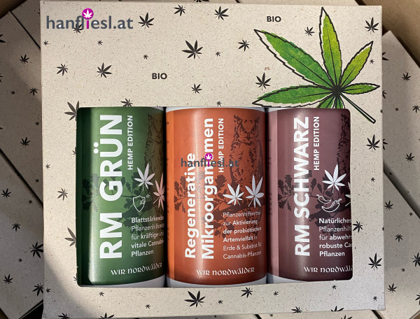 Spezielle Pflanzen benötigen natürlich auch eine spezielle Pflege und spezielle Pflanzenhilfsmittel mit regenerativen Mikroorganismen die hier in einem eigens für Hampffplanzen entwickelten Set von den Experten „Wir Nordwälder“ zusammegestellt wurden.